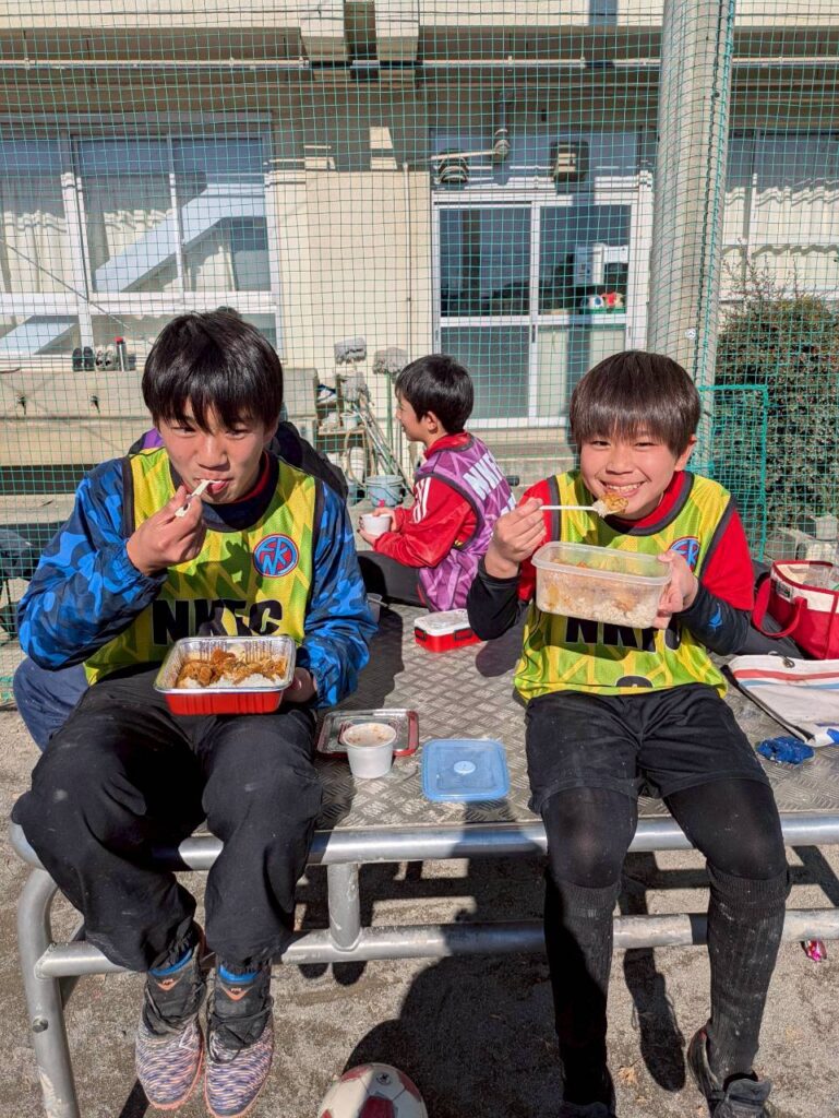 前日の雪の影響で、泥だらけになりながらの親子サッカーのあとは、初蹴り恒例となる豚汁とカレーをみんなで食べました!